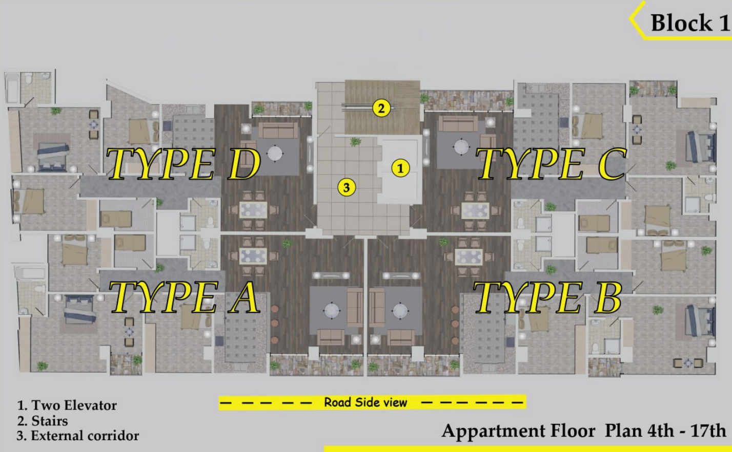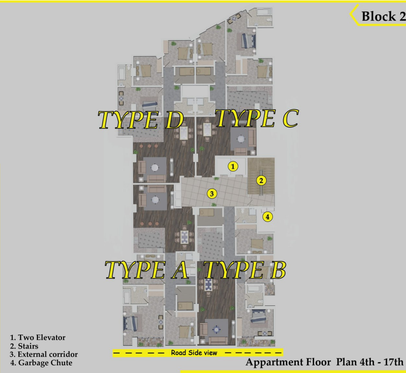 - Payment Schedule: After the initial down payment, enjoy the convenience of 6 easy payment schedules, ensuring a stress-free home-buying experience. Elevators, Stairs, and External Corridors: Benefit from the convenience of two elevators, easy access via stairs, and the elegance of external corridors.